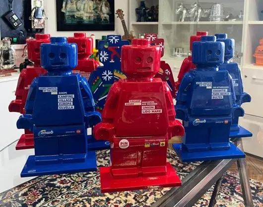 In 2025, the collaboration becomes a symbol of unity and shared vision: PiNCAMP and ANWB chose to merge their identities into a single creation, giving life to the Alter Ego Oscar Big. Crafted in the iconic shades of red and blue and enhanced with their respective logos, these exclusive pieces celebrate the winners as emblems of excellence, innovation, and international recognition.