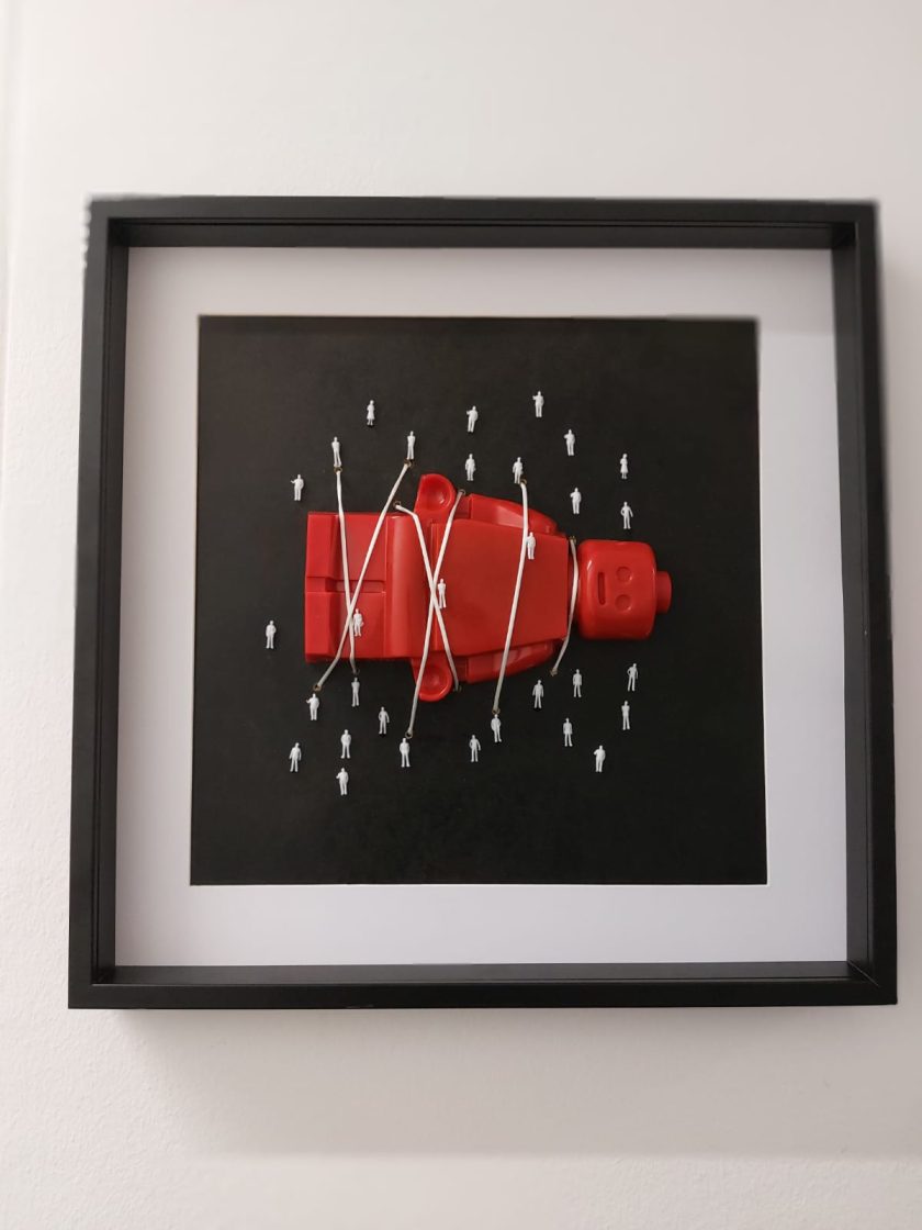 This Alter Ego resin sculpture is a special unique creation of about 50cm x 50cm x 5cm (frame included).